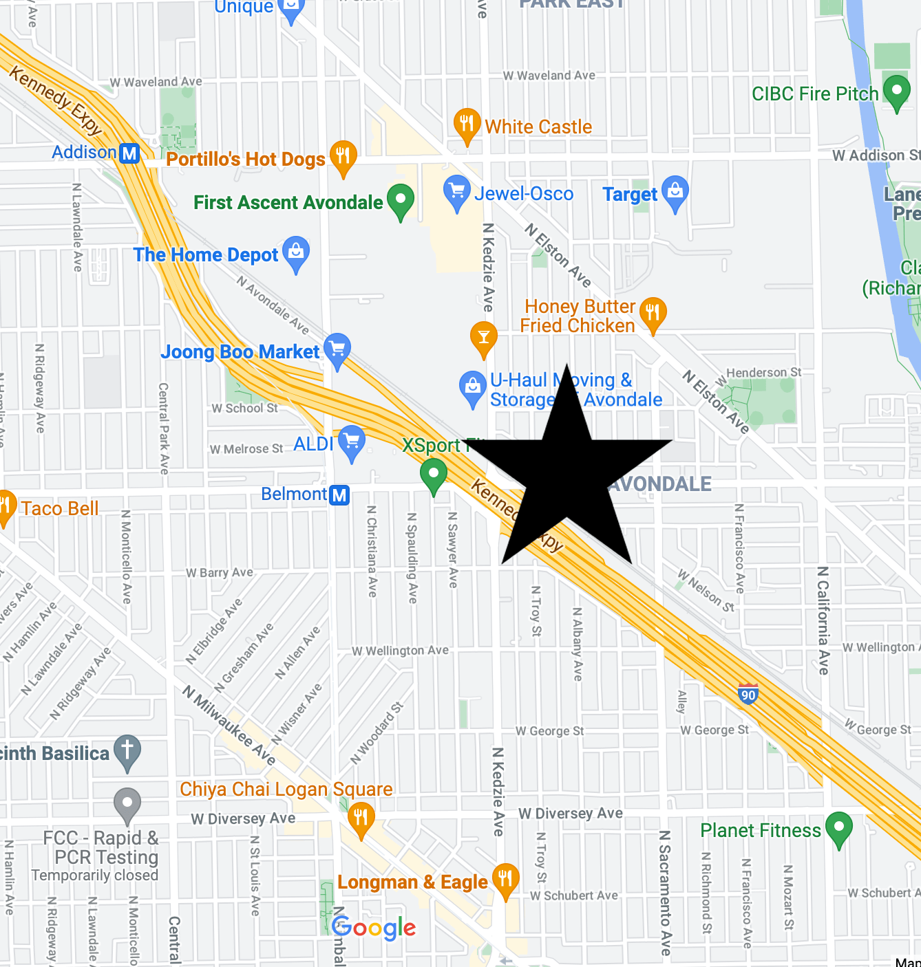 Private studio in Avondale near 90/94 and Belmont Ave. Chicago, Illinois 60618.